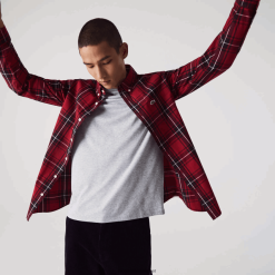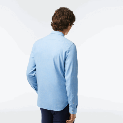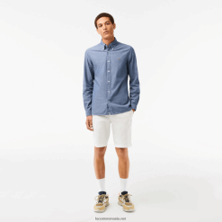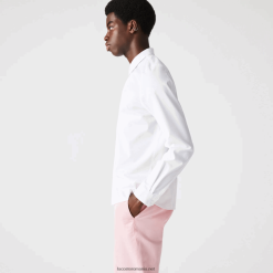 Lacoste Cămașă slim din popelin din bumbac elastic cu plăcuță ascunsă 0H6PD41648 bărbați alb 001