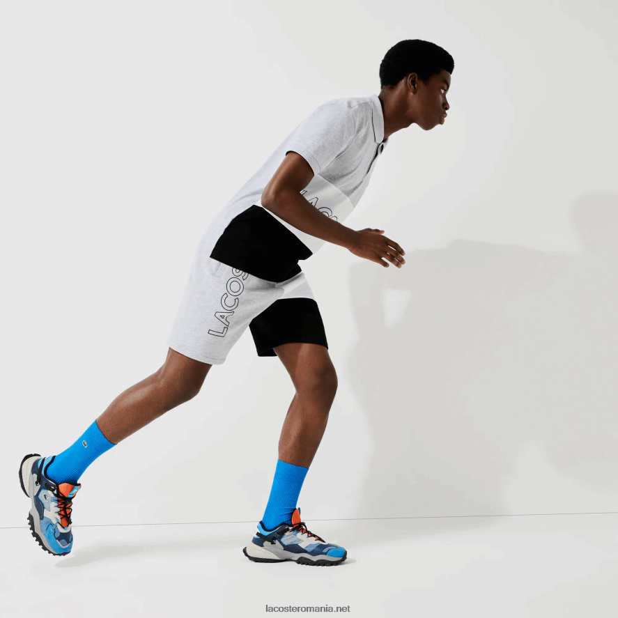 Lacoste bermudă din lână colorblock cu litere 0H6PD41559 bărbați gri chine alb negru p0f