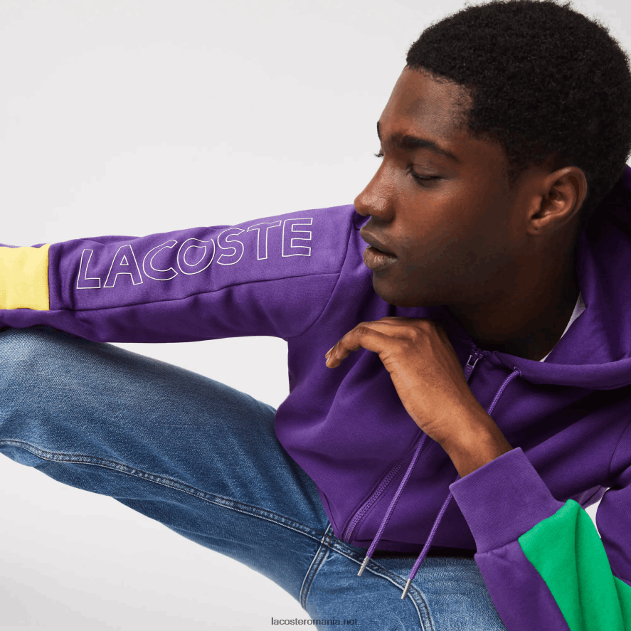 Lacoste hanorac cu glugă colorblock fleece cu fermoar 0H6PD41198 bărbați violet galben verde 1cv