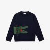 Lacoste hanorac din fleece cu imprimeu crocodil 0H6PD43244 copii gri alb chine w9d