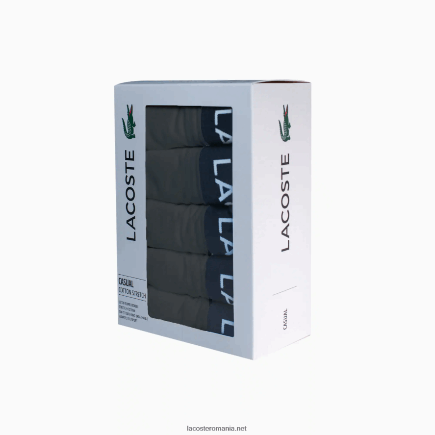 Lacoste Pachet de 5 trunchiuri din bumbac elastic 0H6PD41414 bărbați gri xb4