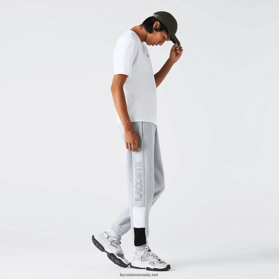 Lacoste pantaloni de jogging din fleece cu marca colorblock 0H6PD41108 bărbați gri chine alb negru p0f