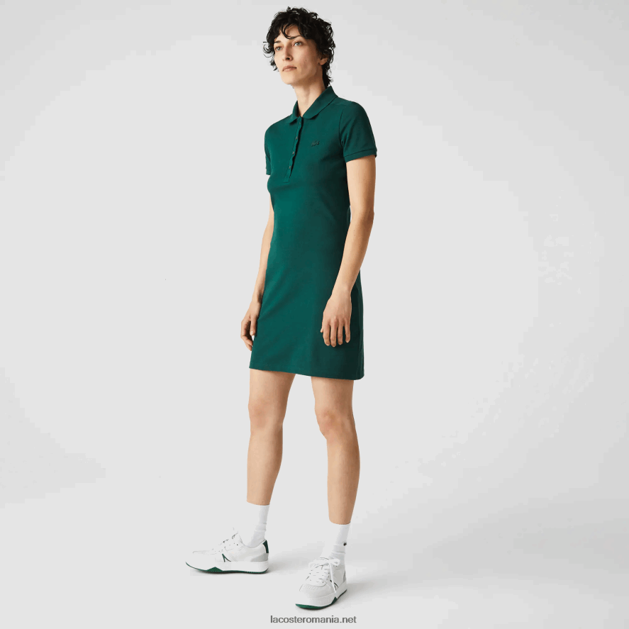 Lacoste rochie polo din bumbac elastic piqué 0H6PD42467 femei verde 3m2
