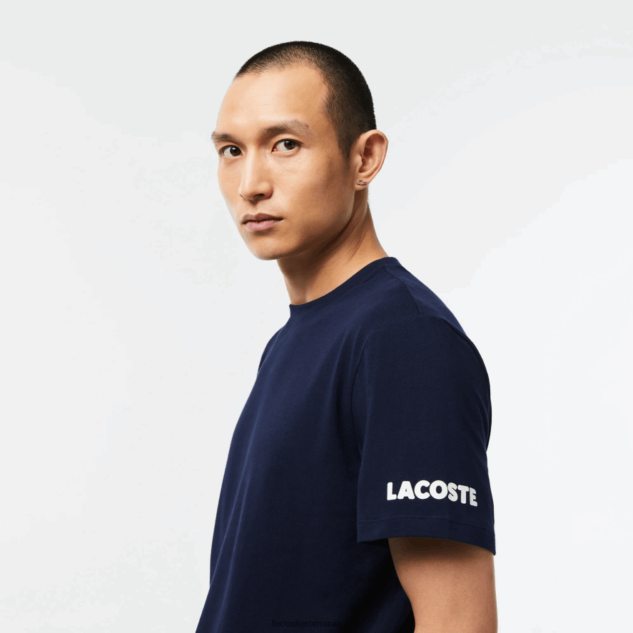 Lacoste tricou cu imprimeu contrast din jerseu de bumbac 0H6PD4495 bărbați bleumarin alb 525