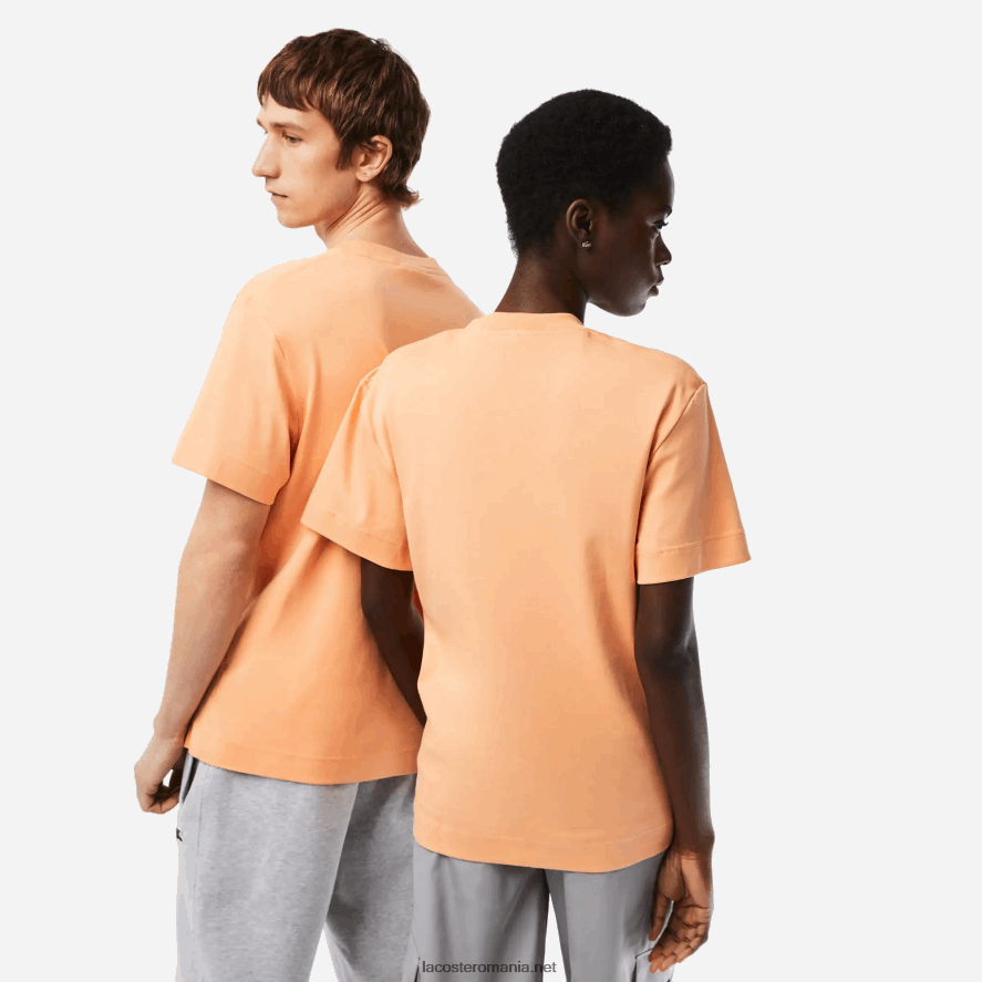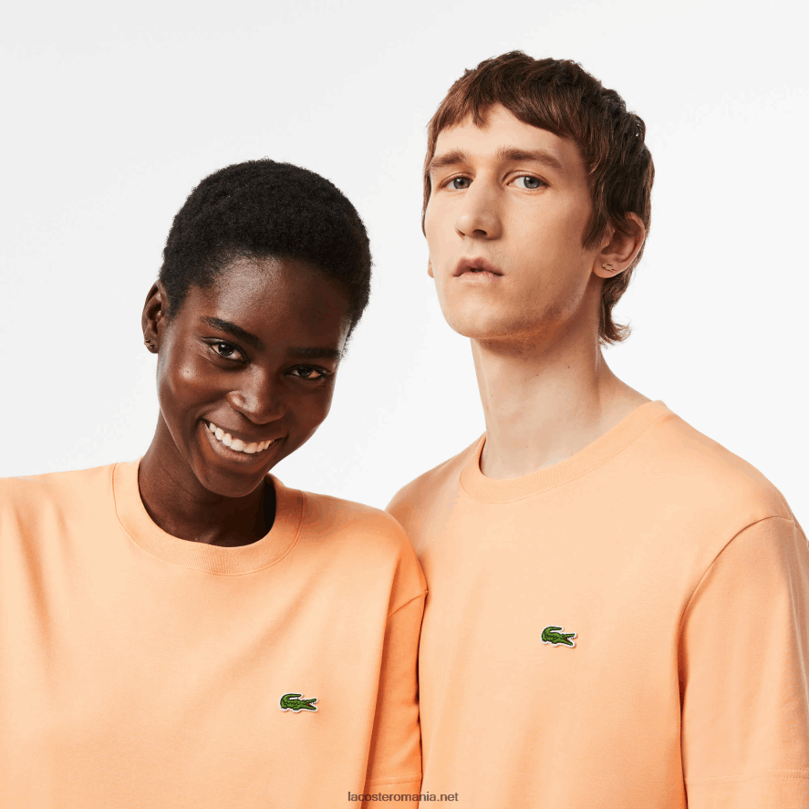 Lacoste tricou din bumbac organic cu decolteu 0H6PD498 bărbați portocaliu deschis heb