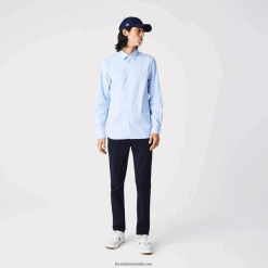 Lacoste Cămașă slim din popelin din bumbac elastic cu plăcuță ascunsă 0H6PD41648 bărbați alb 001