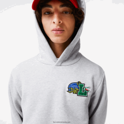 Lacoste hanorac cu glugă și fermoar cu buzunar cangur 0H6PD43191 copii grey chine cca