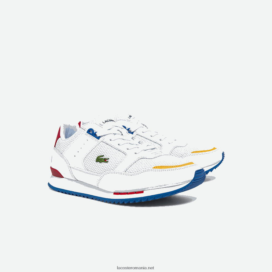 Lacoste adidași din material și piele partener piste 0H6PD41888 bărbați alb/albastru 080