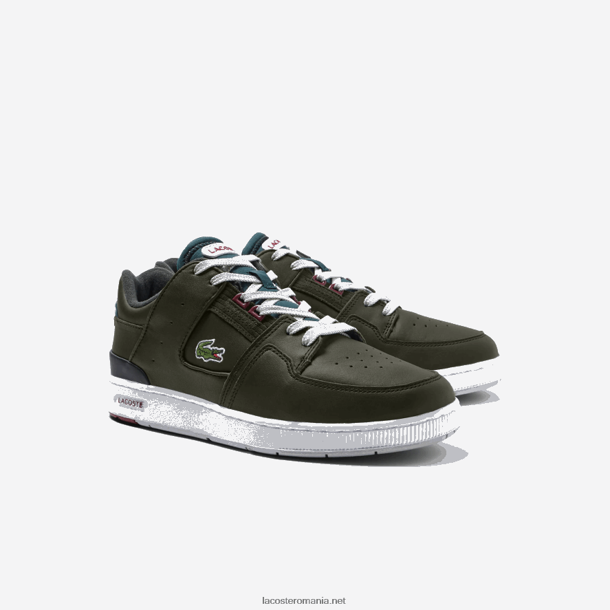 Lacoste adidași în contrast de culoare din piele curte 0H6PD41705 bărbați kaki și alb 255