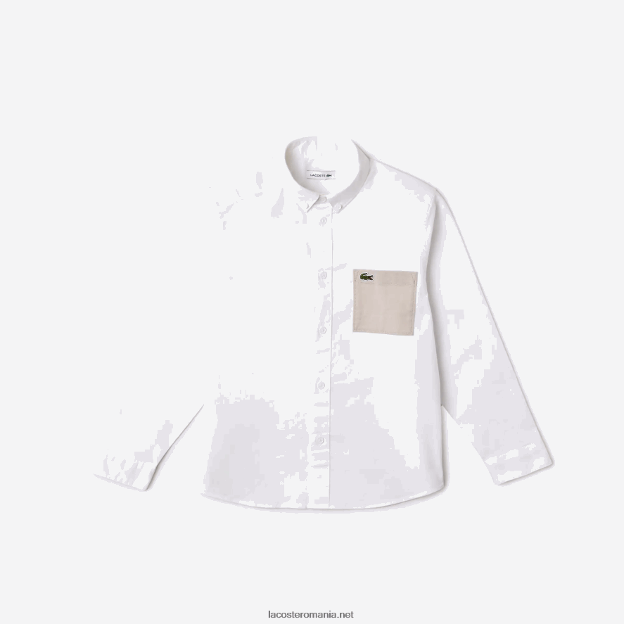 Lacoste cămașă cu buzunar în contrast 0H6PD43080 copii alb bej nbn