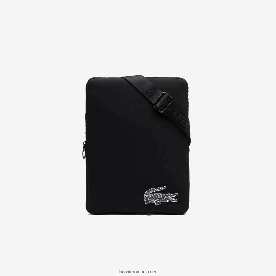 Lacoste l.12.12 geantă computer din piele cu curea de umăr detașabilă 0H6PD42030 bărbați negru 000