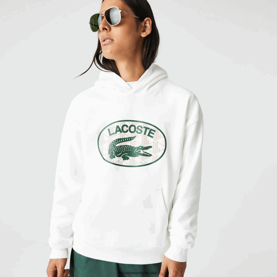 Lacoste Hanorac cu glugă cu monogramă, cu potrivire lejeră 0H6PD4972 bărbați alb 70v