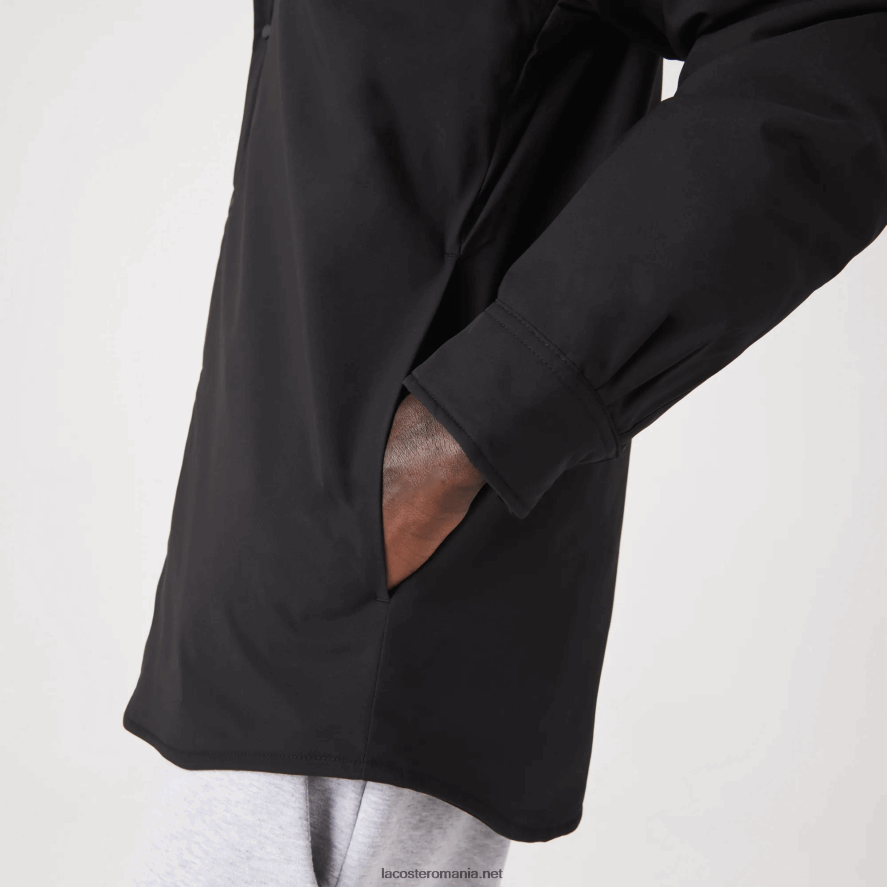 - buzunare laterale frontale, buzunar interior cu depozitare pentru căști și ecuson Lacoste din silicon ton pe ton pe spate