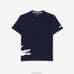 Lacoste tricou cu imprimeu contrast din jerseu de bumbac 0H6PD4495 bărbați bleumarin alb 525