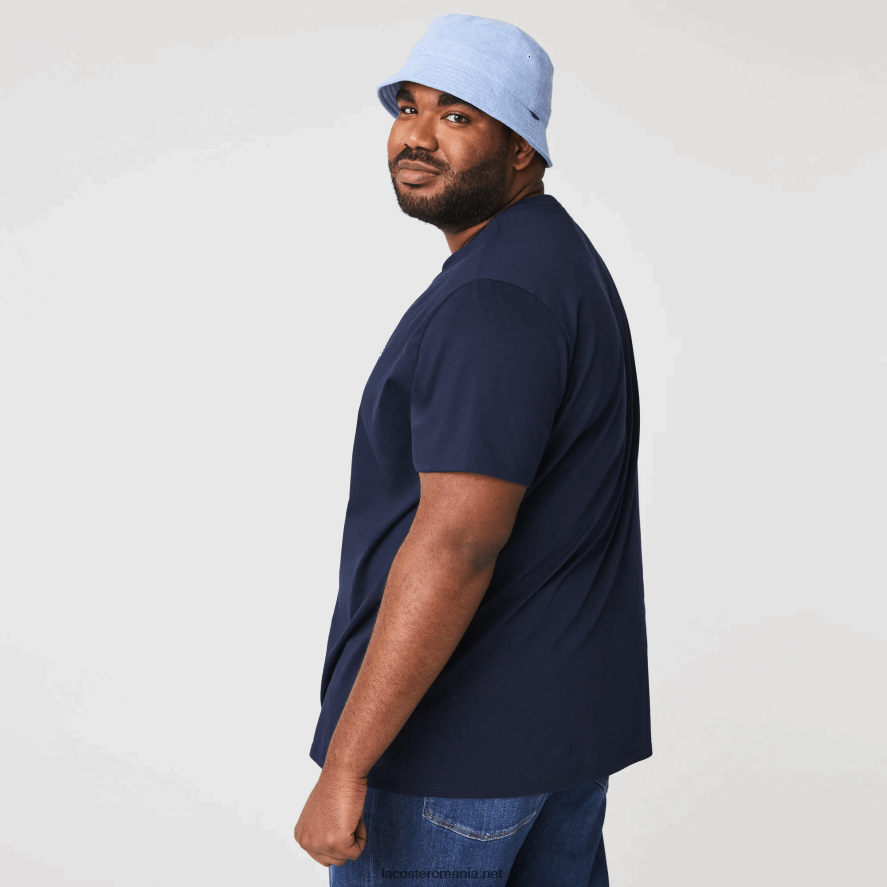 Lacoste tricou din jerseu de bumbac pima decolteu 0H6PD438 bărbați bleumarin 166