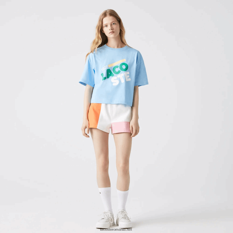 Lacoste tricou scurt din bumbac organic cu pete larg 0H6PD42611 femei hbp albastru